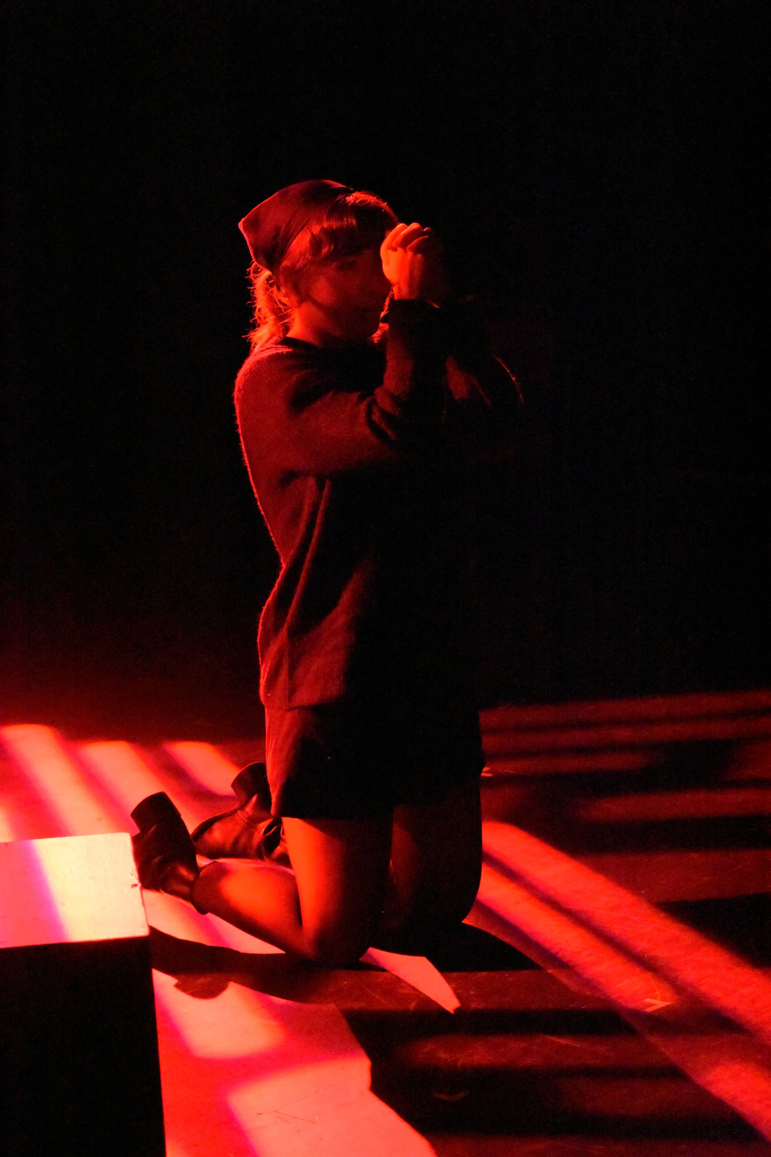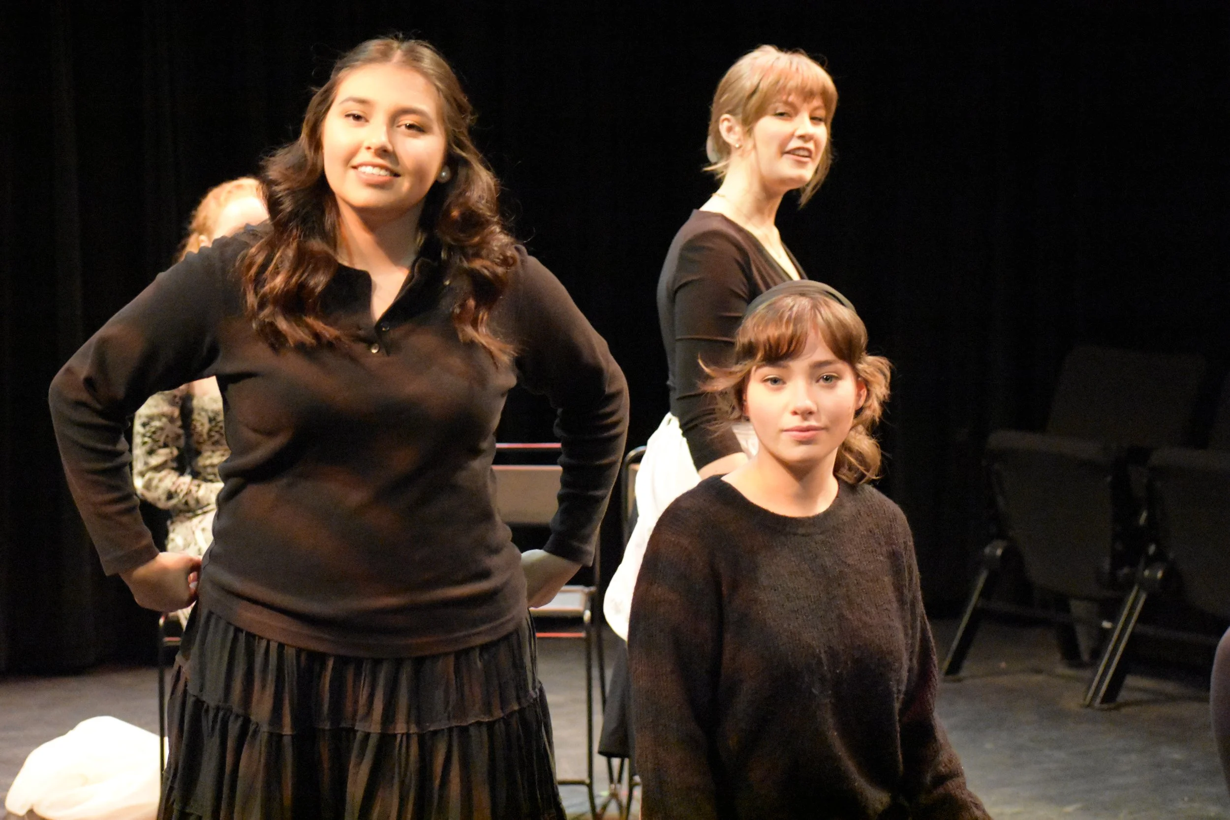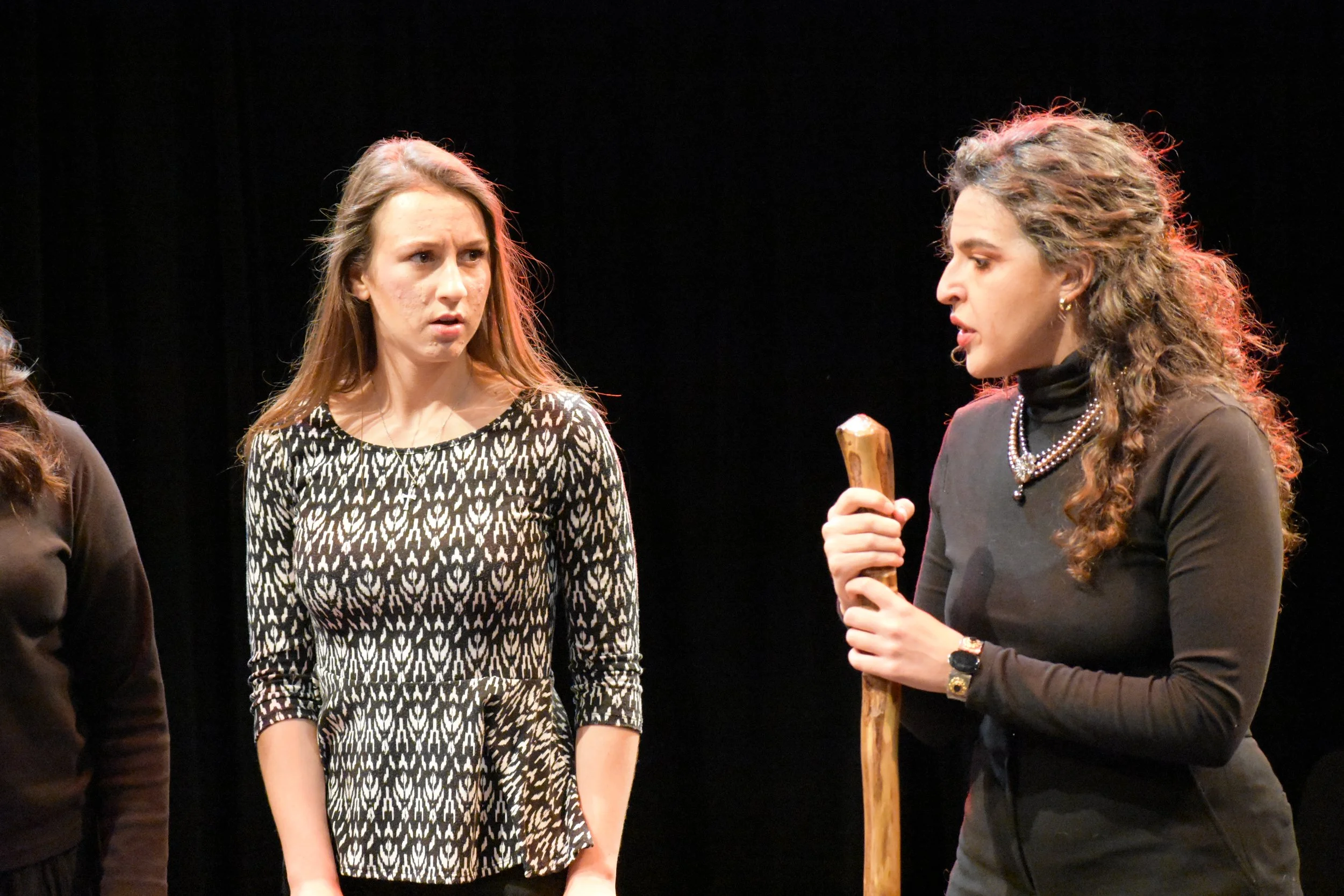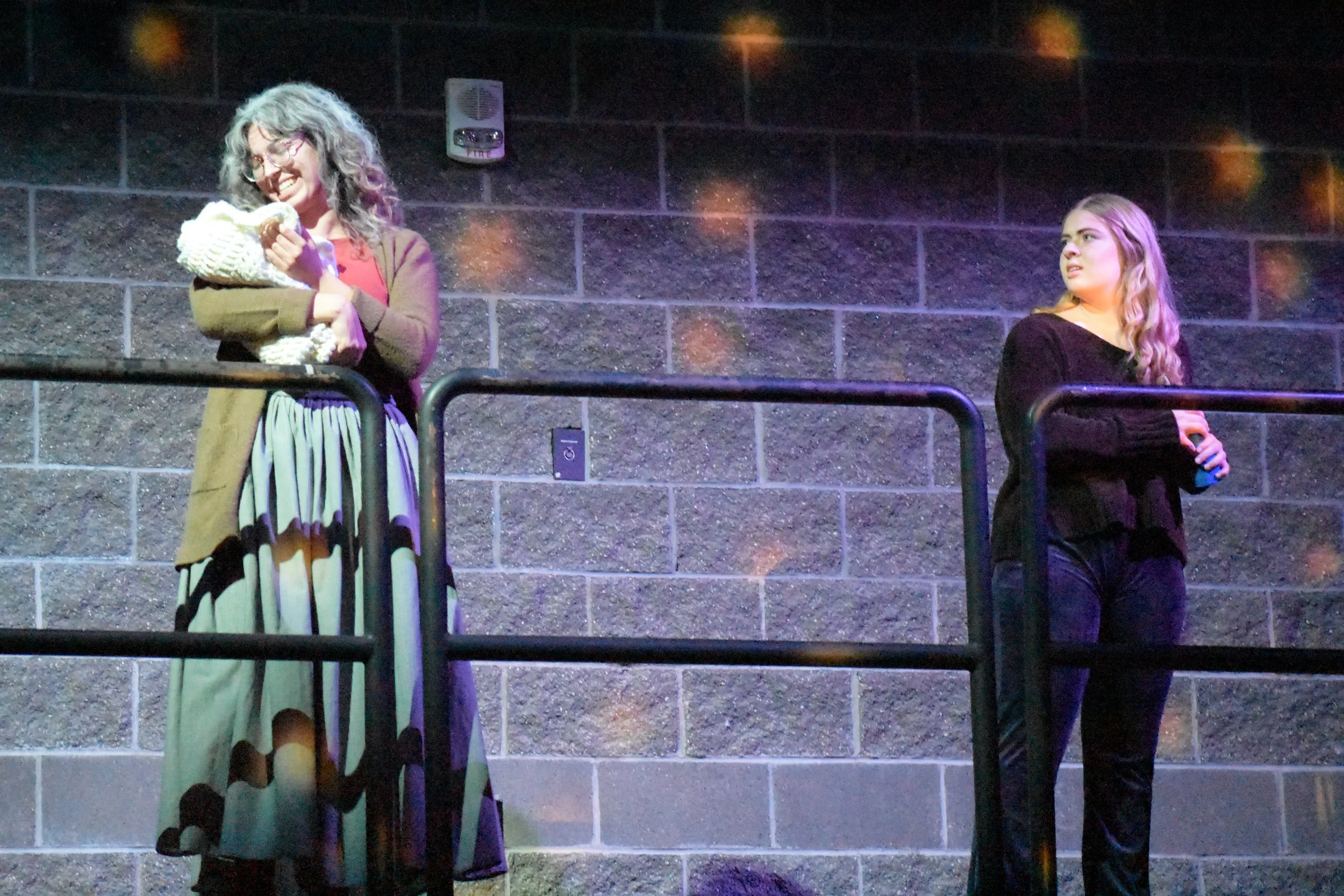 Production Photo: Bernarda, overcome by grief, begins to slip.